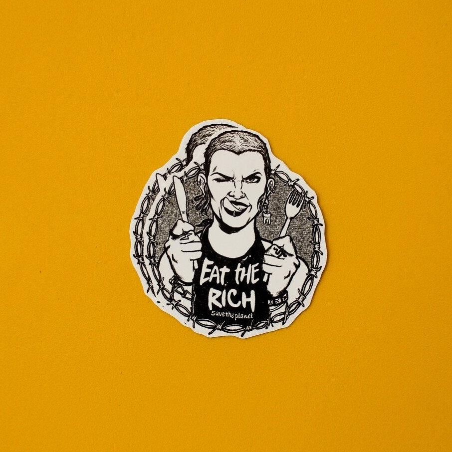 Autocolante Eat the Rich 1,00 € Desconto de %. Partilhar Comprar Contactar Tags eat the rich Material Folha poliester autocolante Características