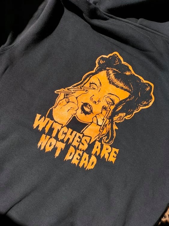 Hoodie "Witches are not Dead" 43,00 € Desconto de %. Partilhar Tamanho S M L XL Comprar Contactar 1 unidades em stock Hoodie unisexo "Witches are not dead" Impresso em Portugal em poucas quantidades. Tags gothhalloweenwitcheslaranjapretoserigrafiawitches are not dead Marca Fruit of the loom - Premium Composição 70% algodão, 30% poliéster Impressão serigrafia Cor preto Gramagem 280 g/m² Características