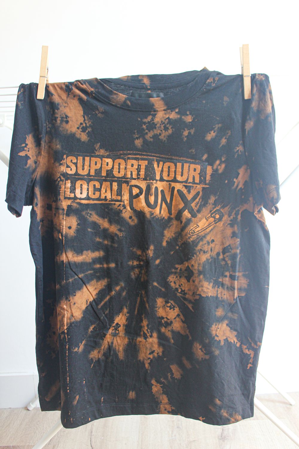 t-shirt "Support your local Punx" 18,00 € Desconto de %. Partilhar Corte Normal Crop Tamanho S M L XL Comprar Contactar 1 unidades em stock T-shirt tie dye unisexo "Support your local punx" O tie dye é feito à mão, o que torna todas as t-shirts únicas e com um padrão diferente. Impressa em Portugal em poucas quantidades e com t-shirts encontradas em lojas de segunda mão. Tags segunda mãotie dyepretosupport your local punxpunx Impressão serigrafia Cor preto tie dye Marca segunda mão Características
