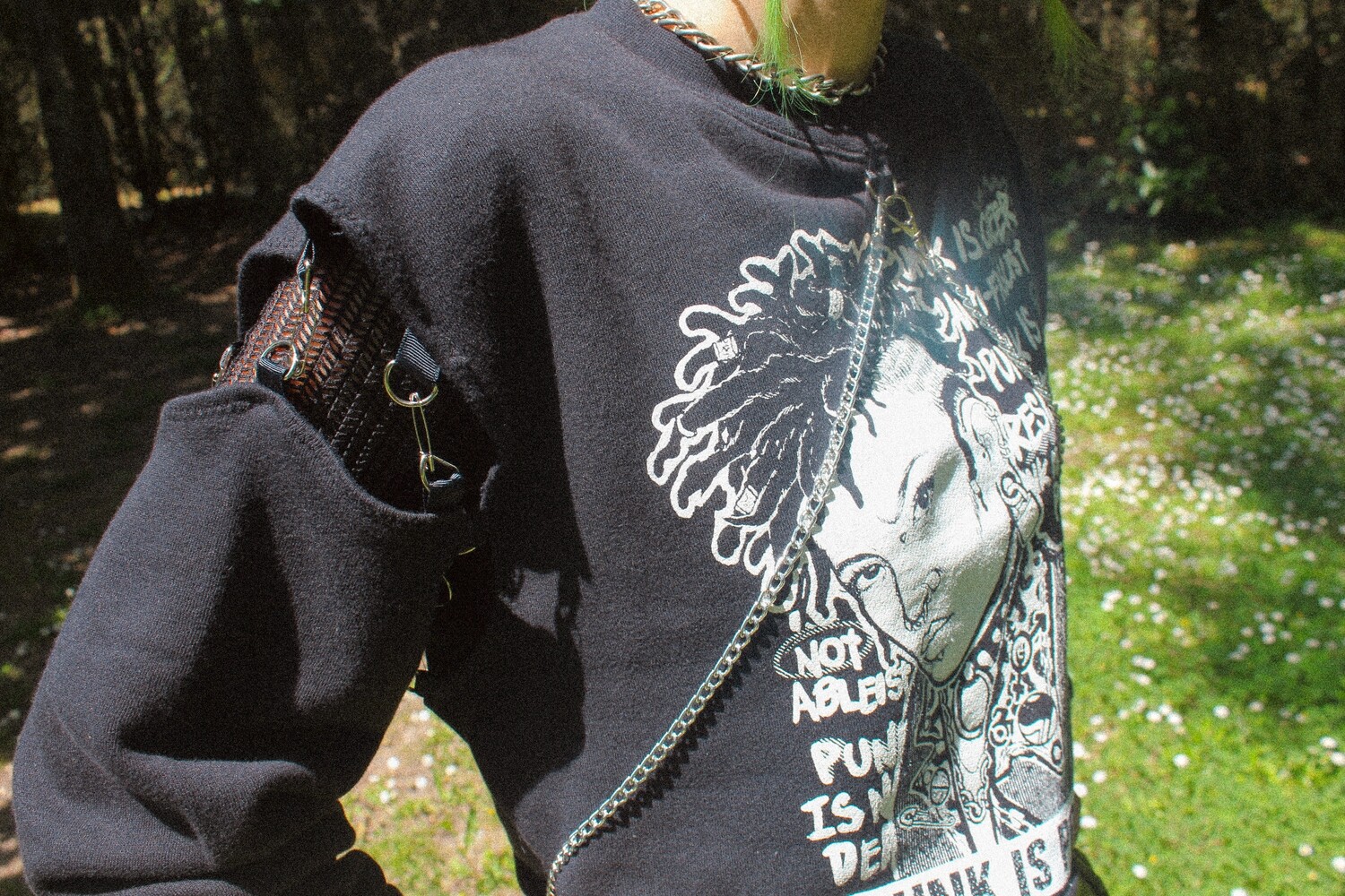 Não tenho fotos da t-shirt com as correntes por isso usei uma foto da sweat, como exemplo.
