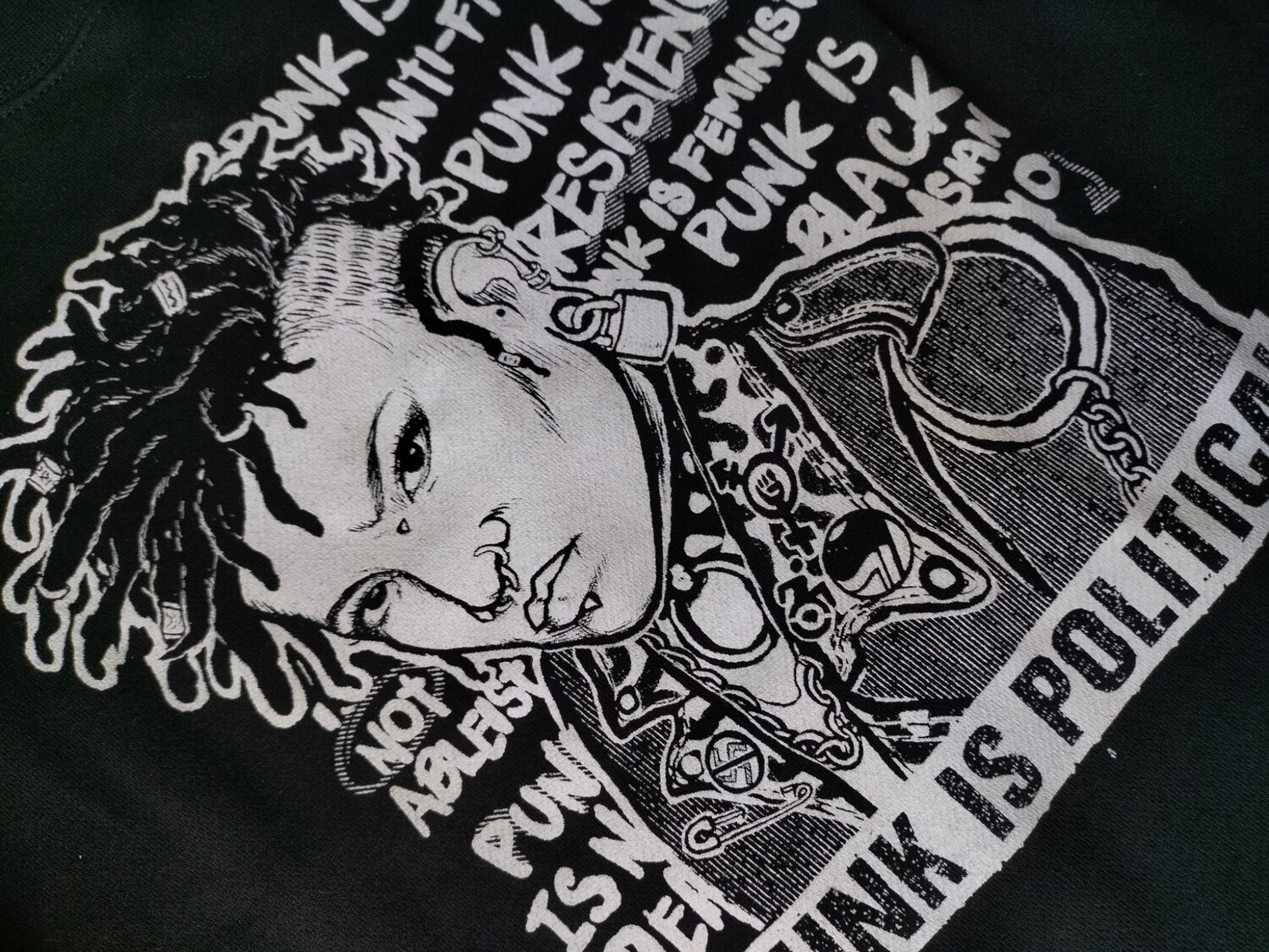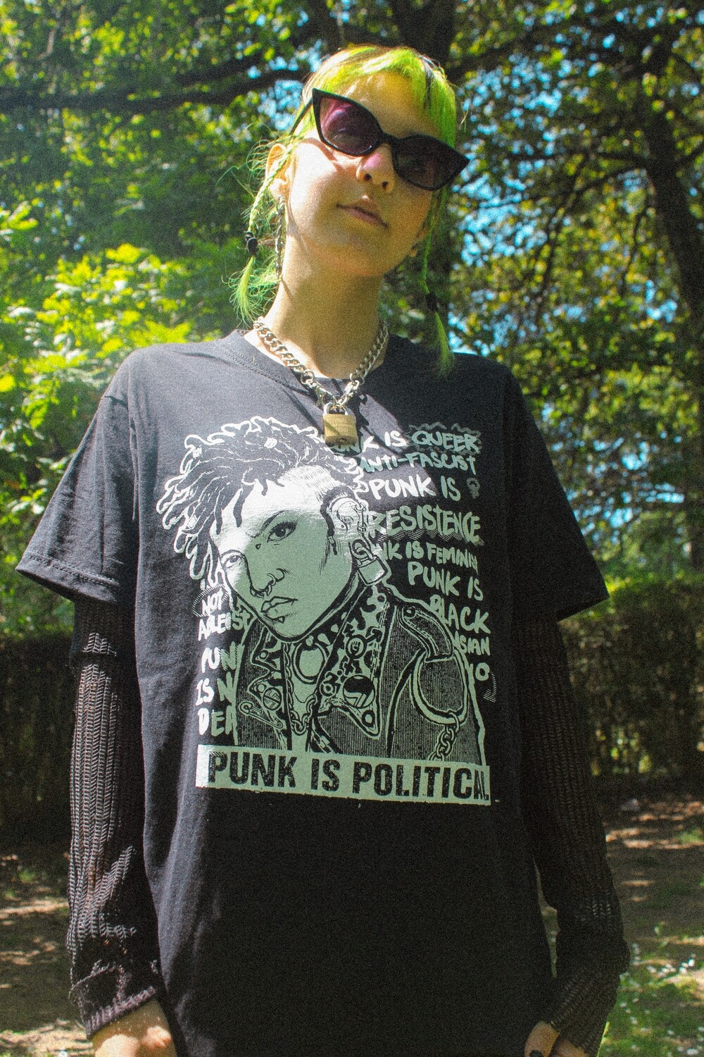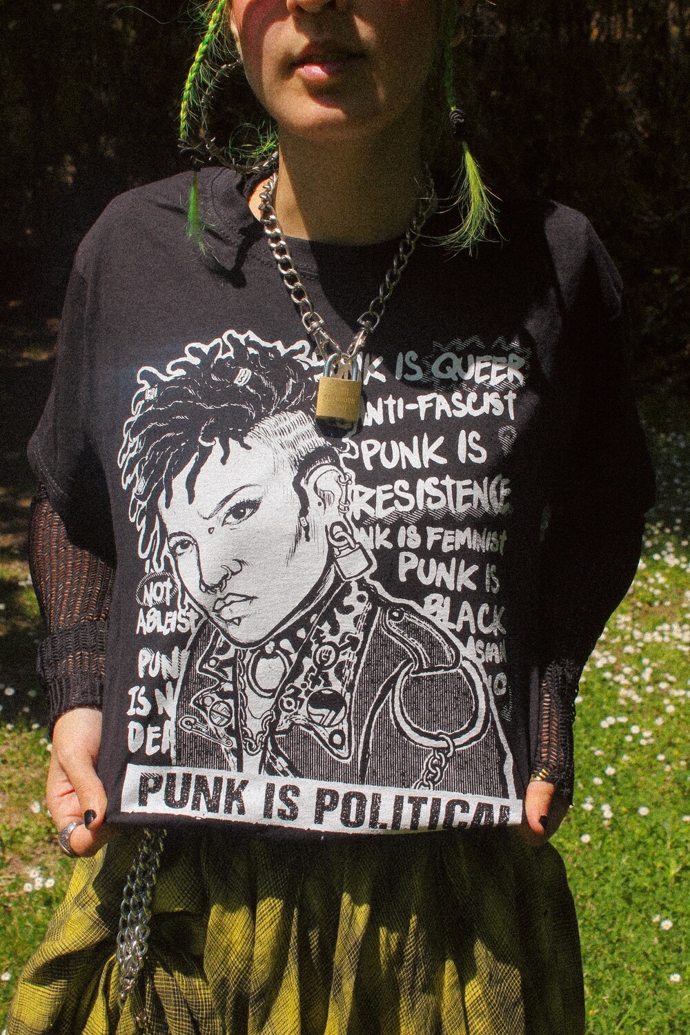 T-shirt unisexo Punk is political. Impressa em Portugal em poucas quantidades.